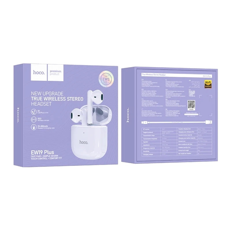 AUDIFONOS HOCO EW19 PLUS BLUETOOTH TWS MORADO